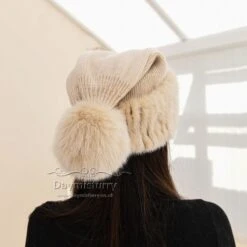 Wool Knit Hat With Fox Fur Ball And Mink Fur Trim, Christmas Hat, Santa Hat, Winter Hat, Fashion Hat