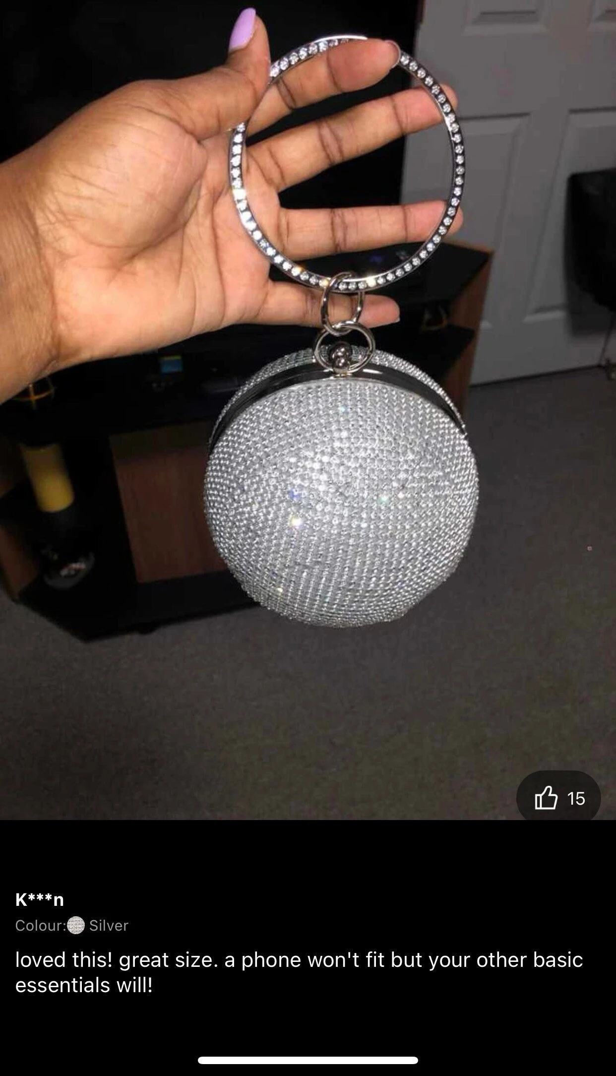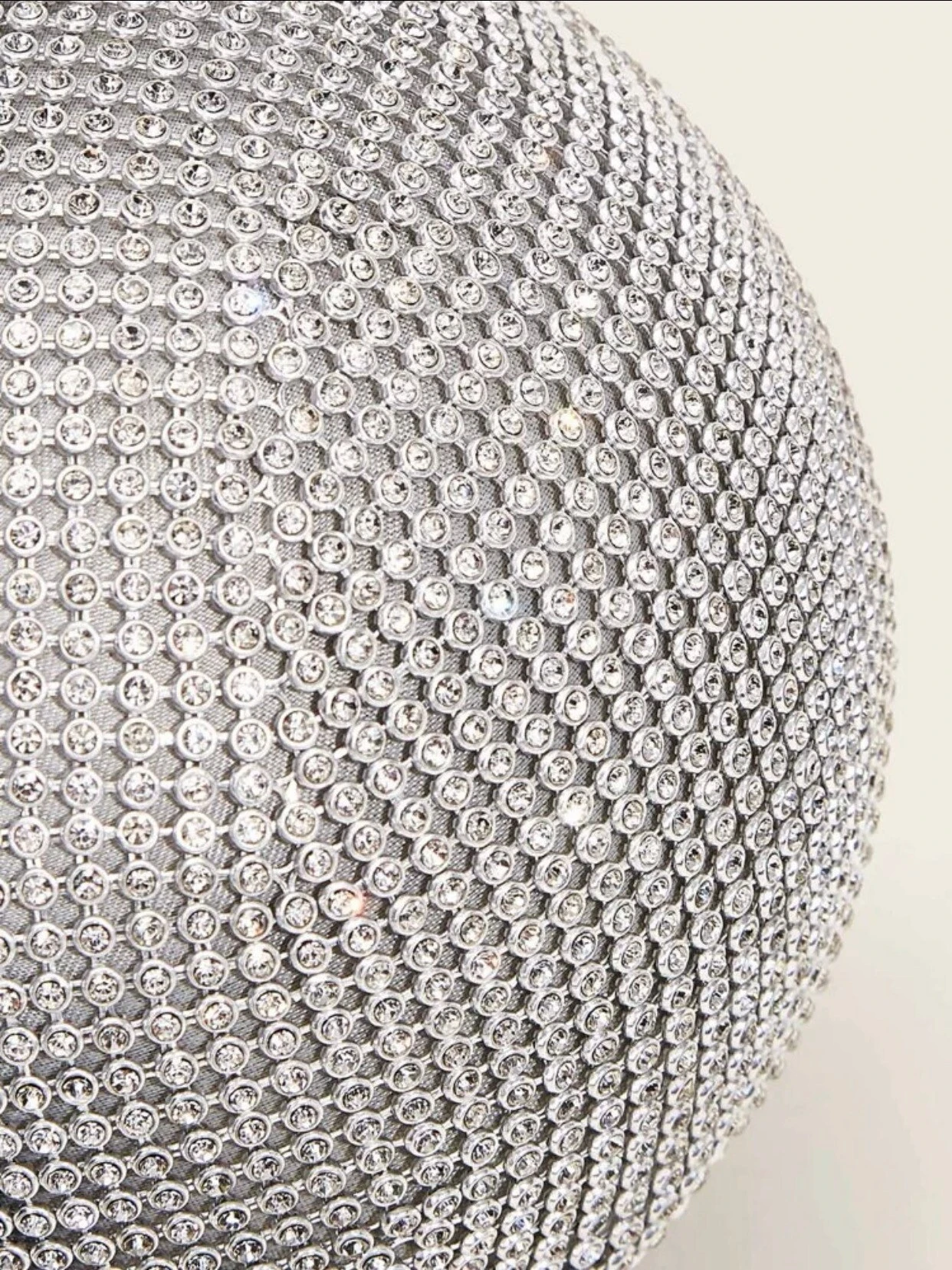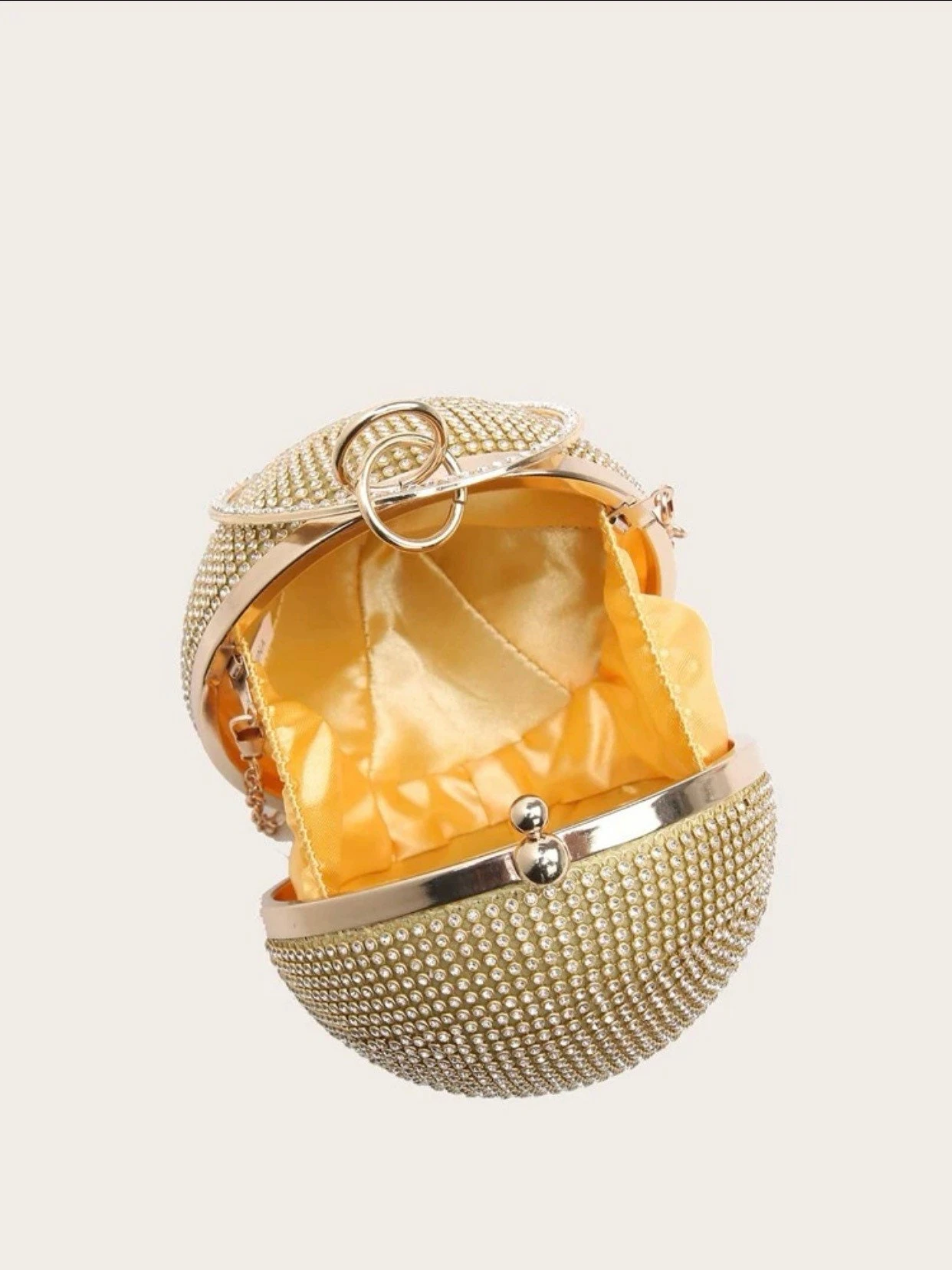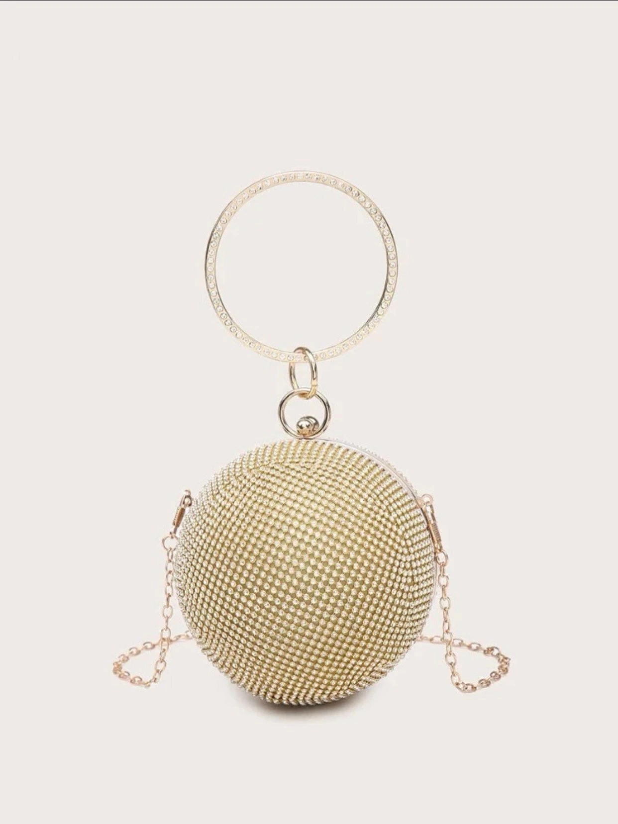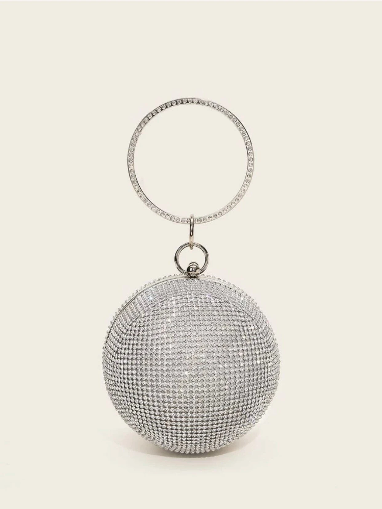 Allover rhinestone covered circle bag. Fit your essentials while looking great.