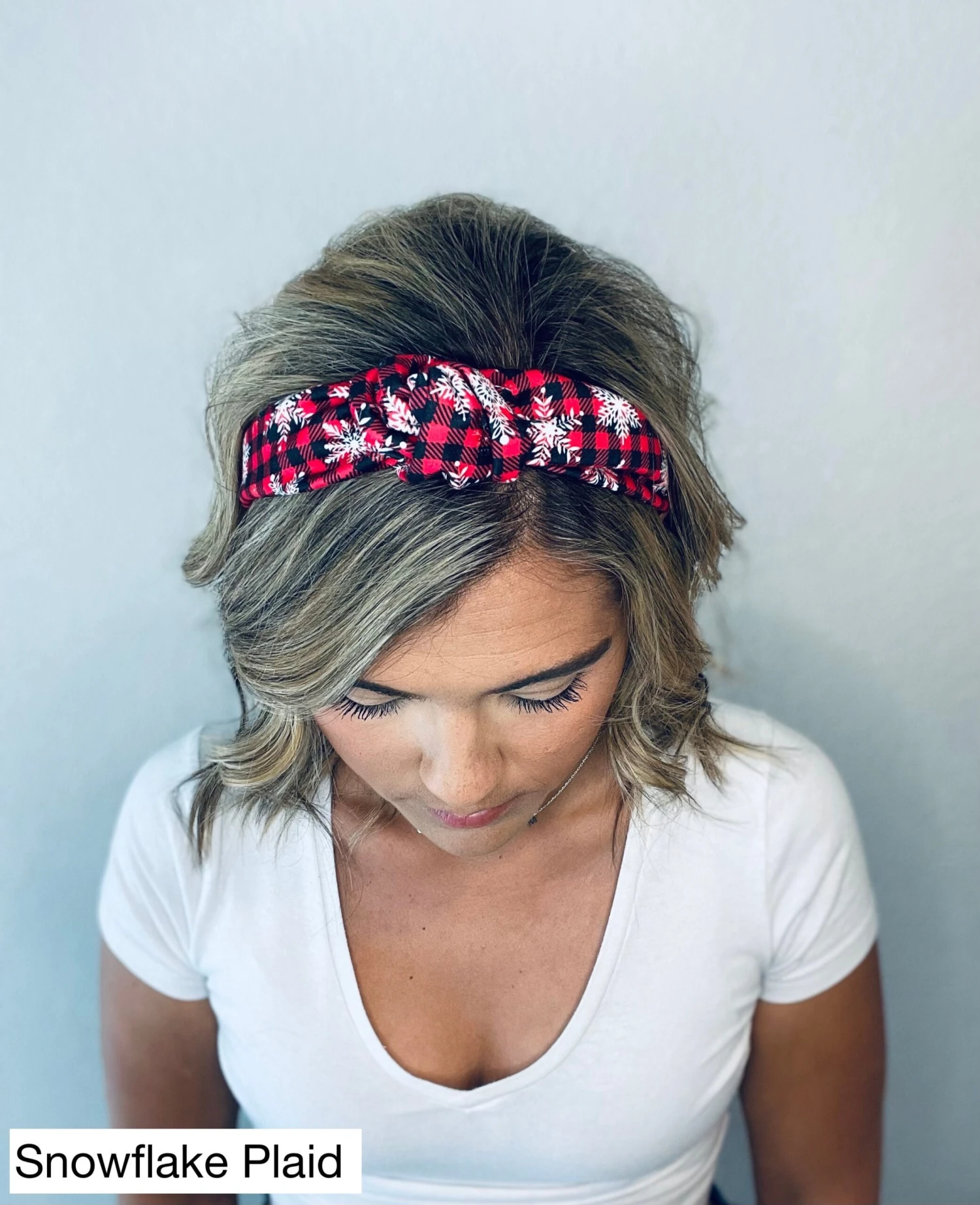 Plastic headbands wrapped in beautiful buttery knit fabric!