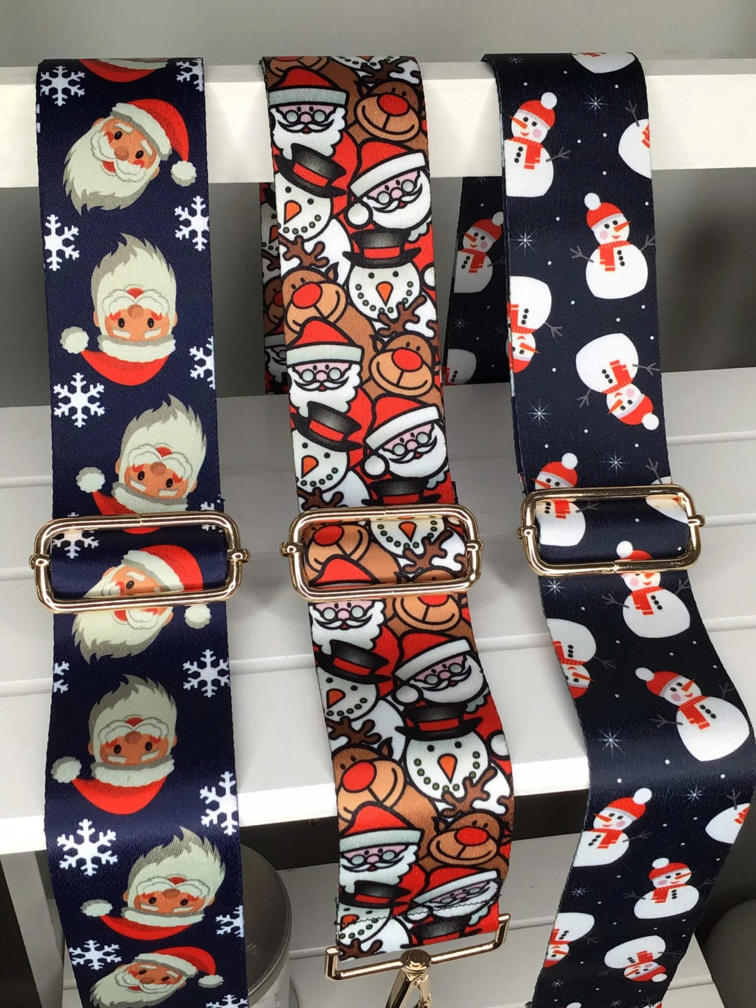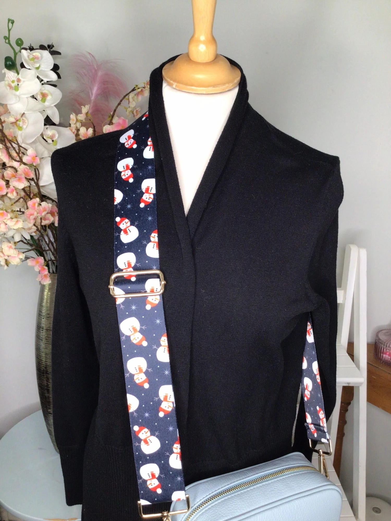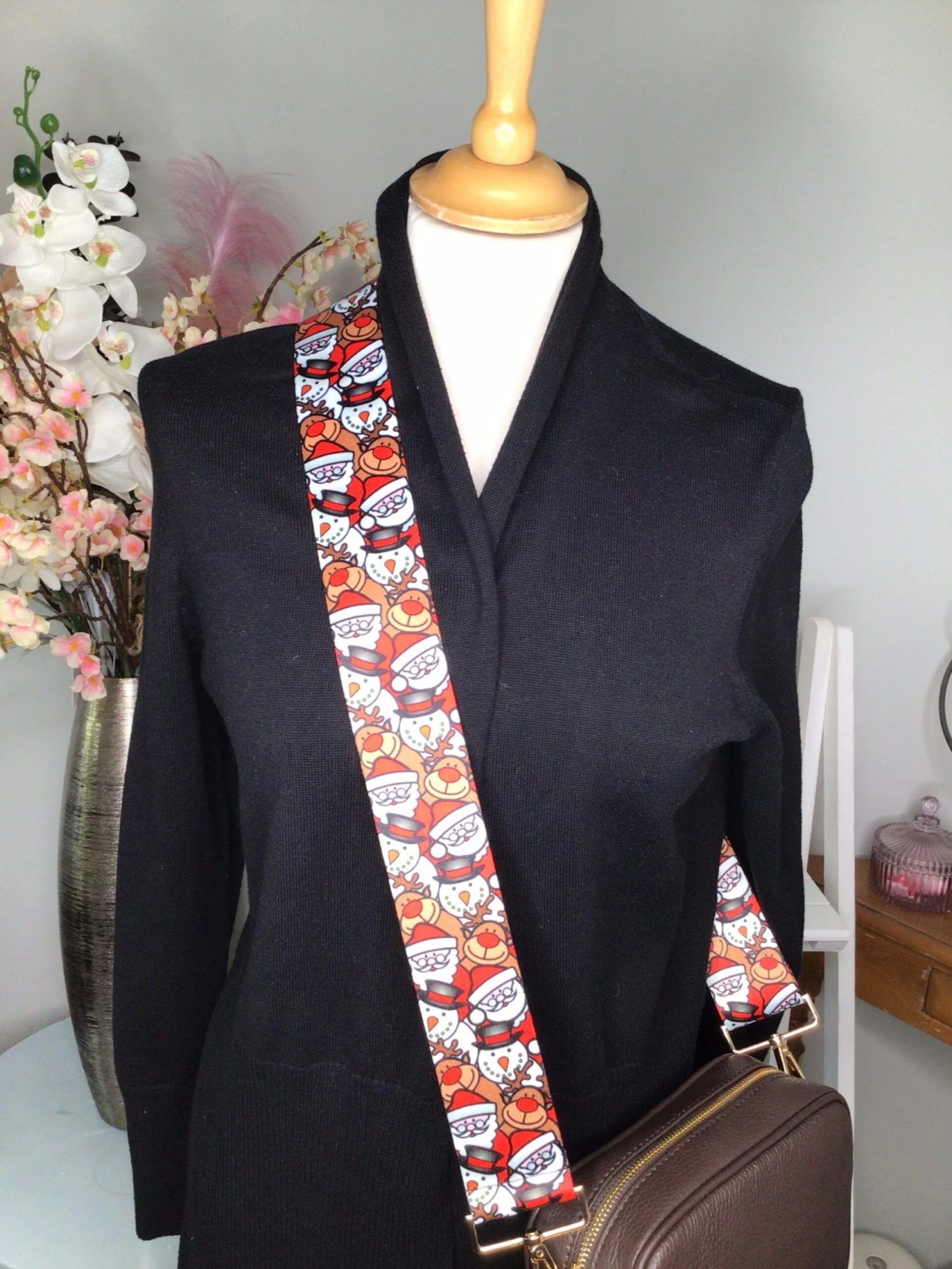 Christmas Bag Strap, snowman and Santa bag straps Handmade by us in the UK