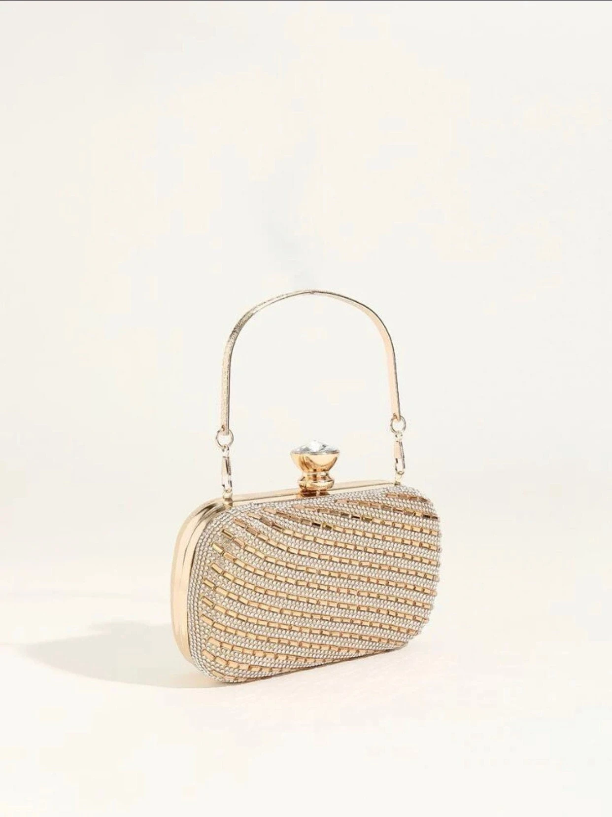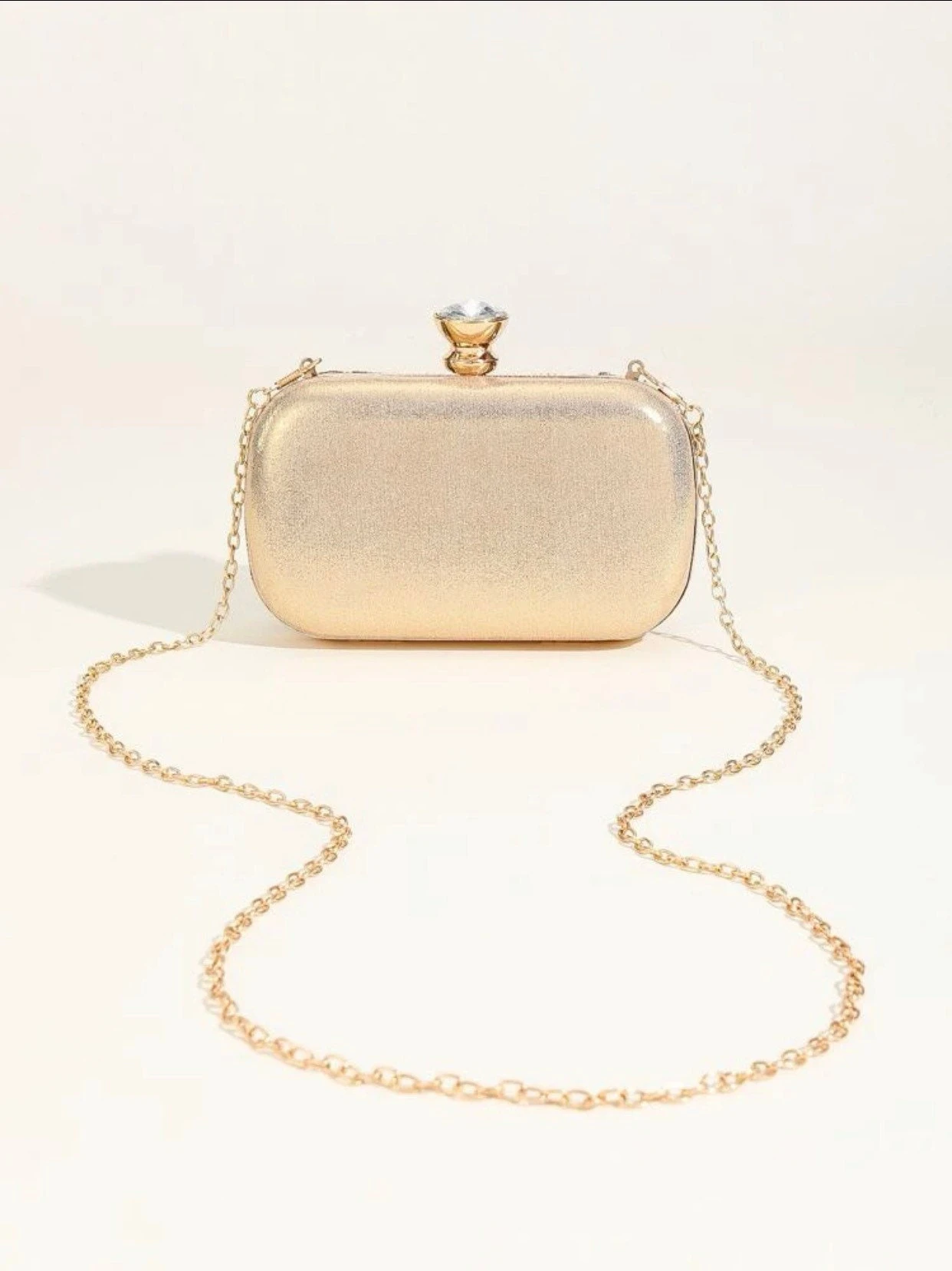 One rhinestone minimalist design clutch bag. Three colours available in a simple chain box bag clutch. Suitable for special occasions, formal events or a nice little gift for someone special.