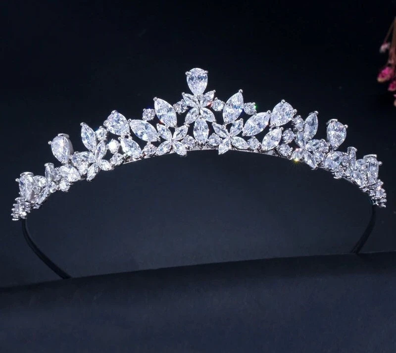 A beautiful romantic Wedding Tiara – Cubic Zirconia stones set in a silver copper band.