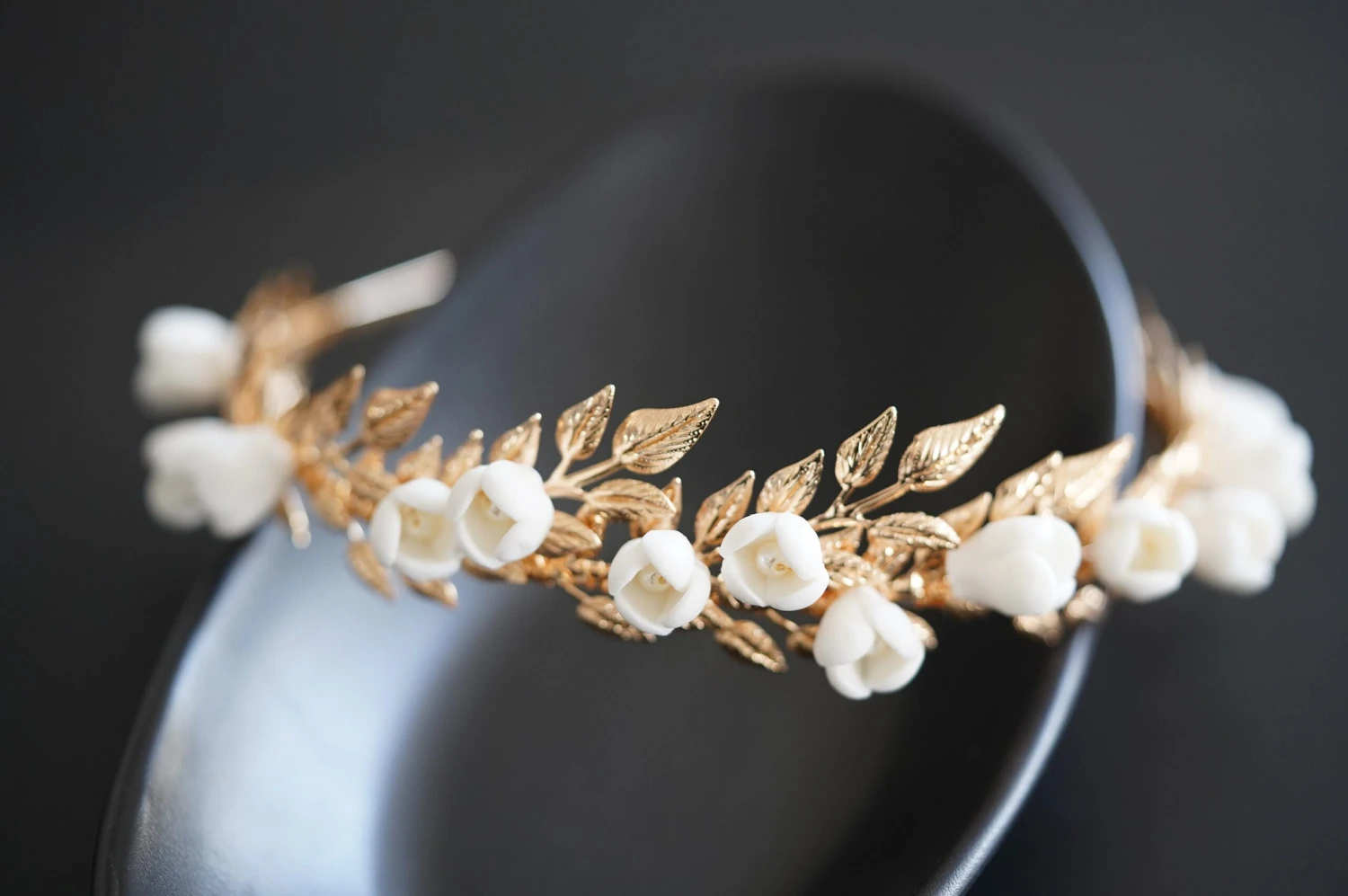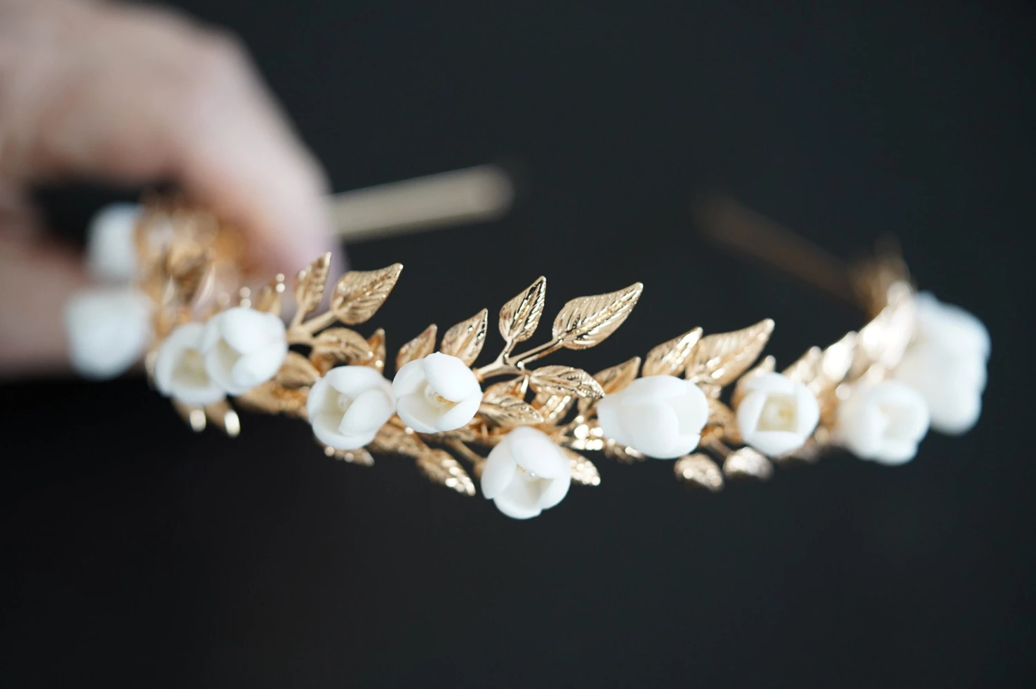 Clay Flower Hairband, Didem gold, Boho Hair Jewelry, gold, Wedding Gift Tip,