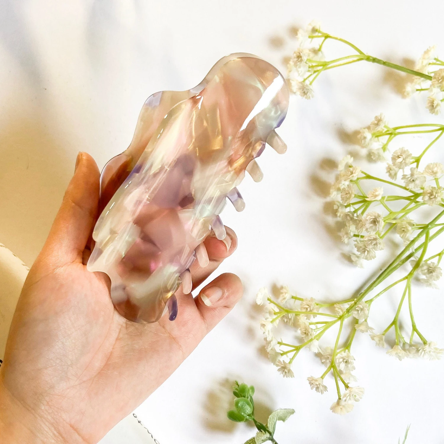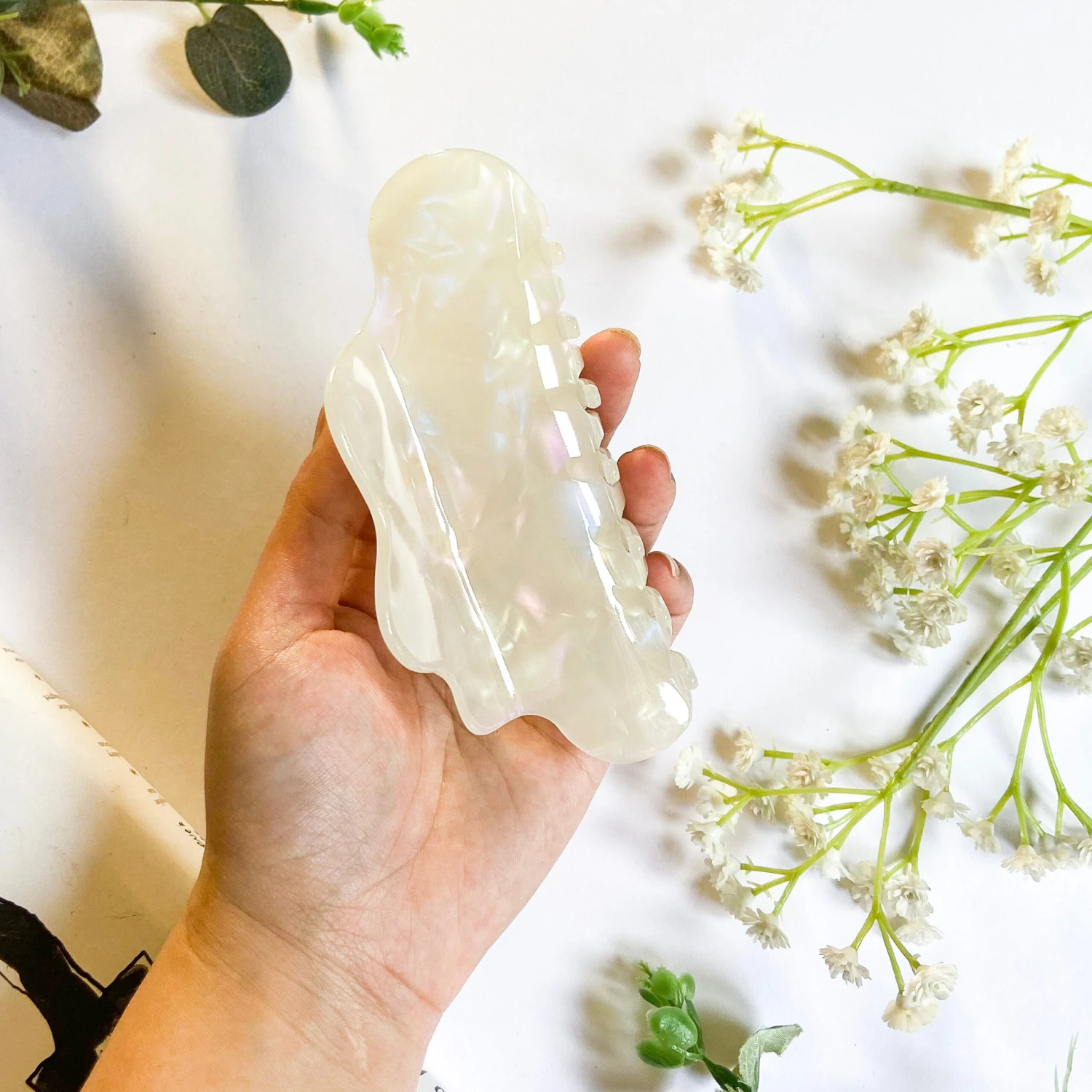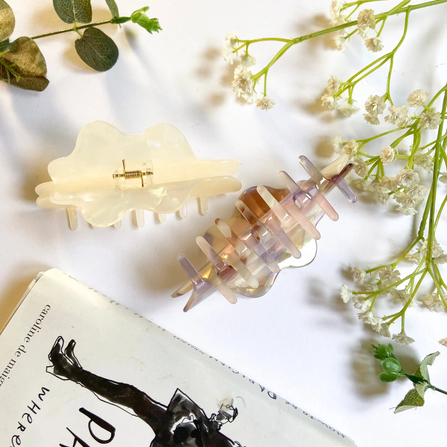 Each one adorned with scallop edges and marble effect printing, these cute hair clips are the perfect way to pin back hair (while topping off an expertly curated summer ensemble). They are also GIANT, the biggest one yet in our collection – so if you have thick hair or want a focal point on your head, this cloud shaped clip is it!