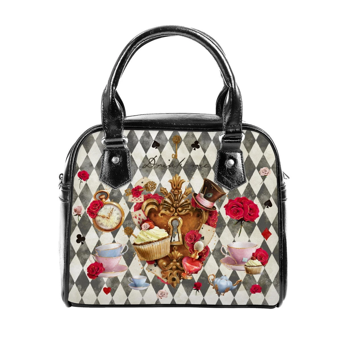 Black Diamond Love Lock Alice in Wonderland Shoulder Handbag