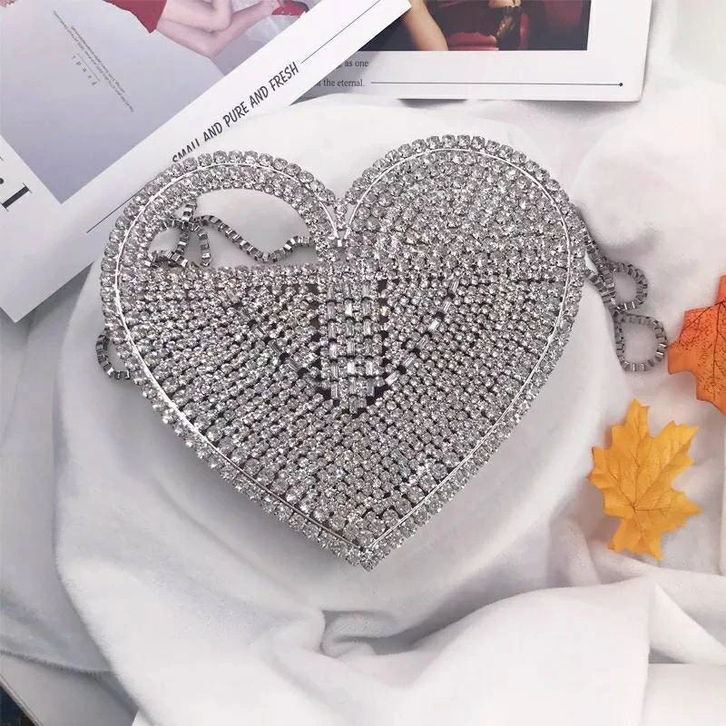 Stunning luxury rhinestone love heart clutch bag perfect for night out, parties, weddings etc.