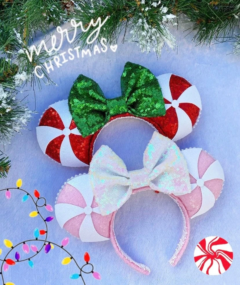 Check out our brand new Pink & Red peppermint swirl ears for our 2021 Christmas Collection â¤ď¸