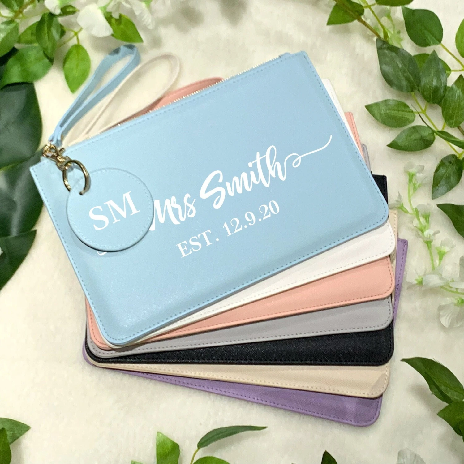 Simply choose the colour of the clutch bag, colour of the personalisation, then add their surname name and date to the personalisation box