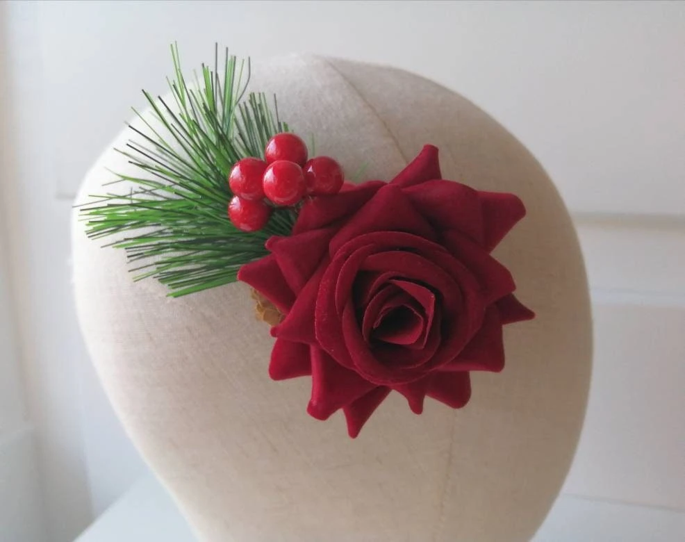 A realistic looking floral Christmas hair accessory to add a festive touch to your hair.