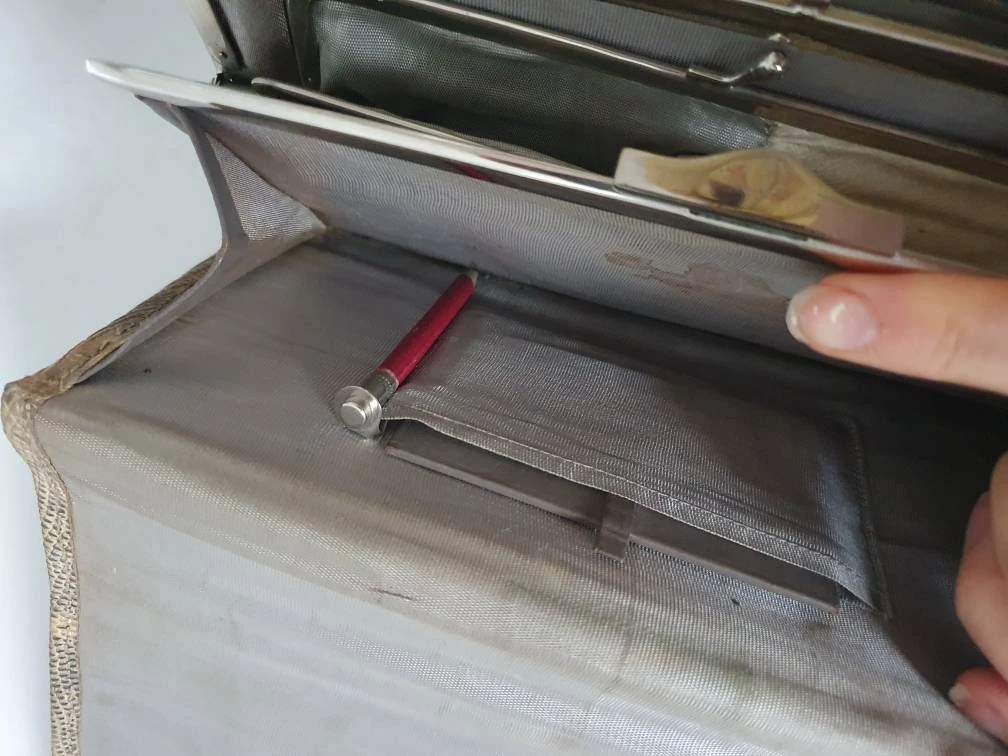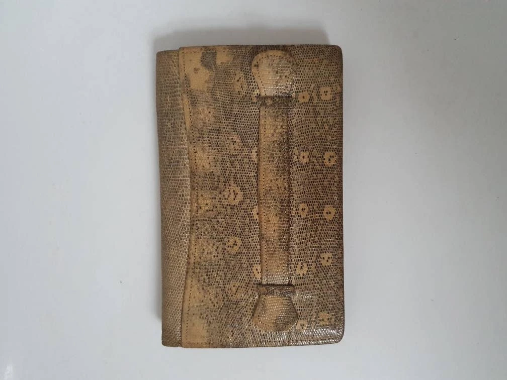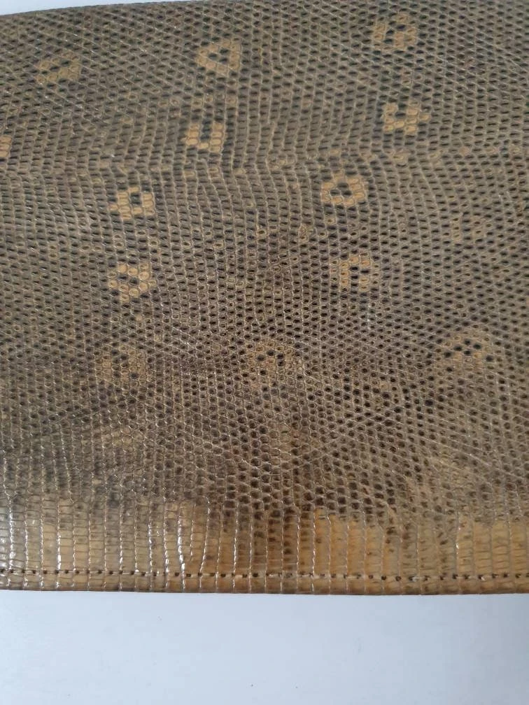 Fab 1930s animal skin clutch bag with loads of compartments inside and mirror and pen would make a great Christmas gift