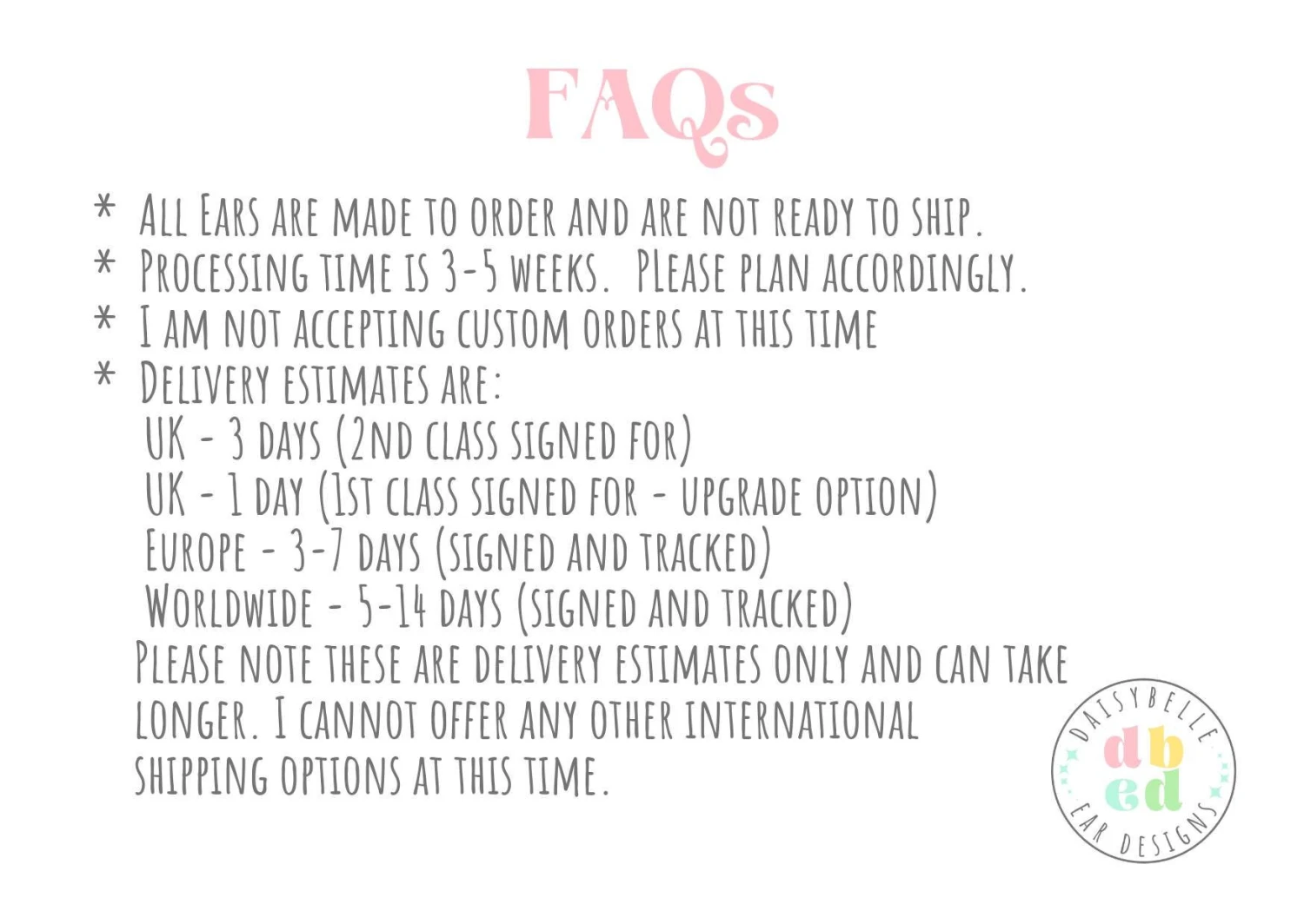 Sign up to the newsletter at https://www.daisybelleears.co.uk/pages/become-a-daisybelle-ear-designs-vip to receive a 15% discount code on your next purchase and information on new releases, upcoming sales, further discounts and deals including exclusive pairs only available on the website.Be sure to read my full item descriptions, shop announcement and shop policies, where you’ll find answers to lots of common questions before purchasing.