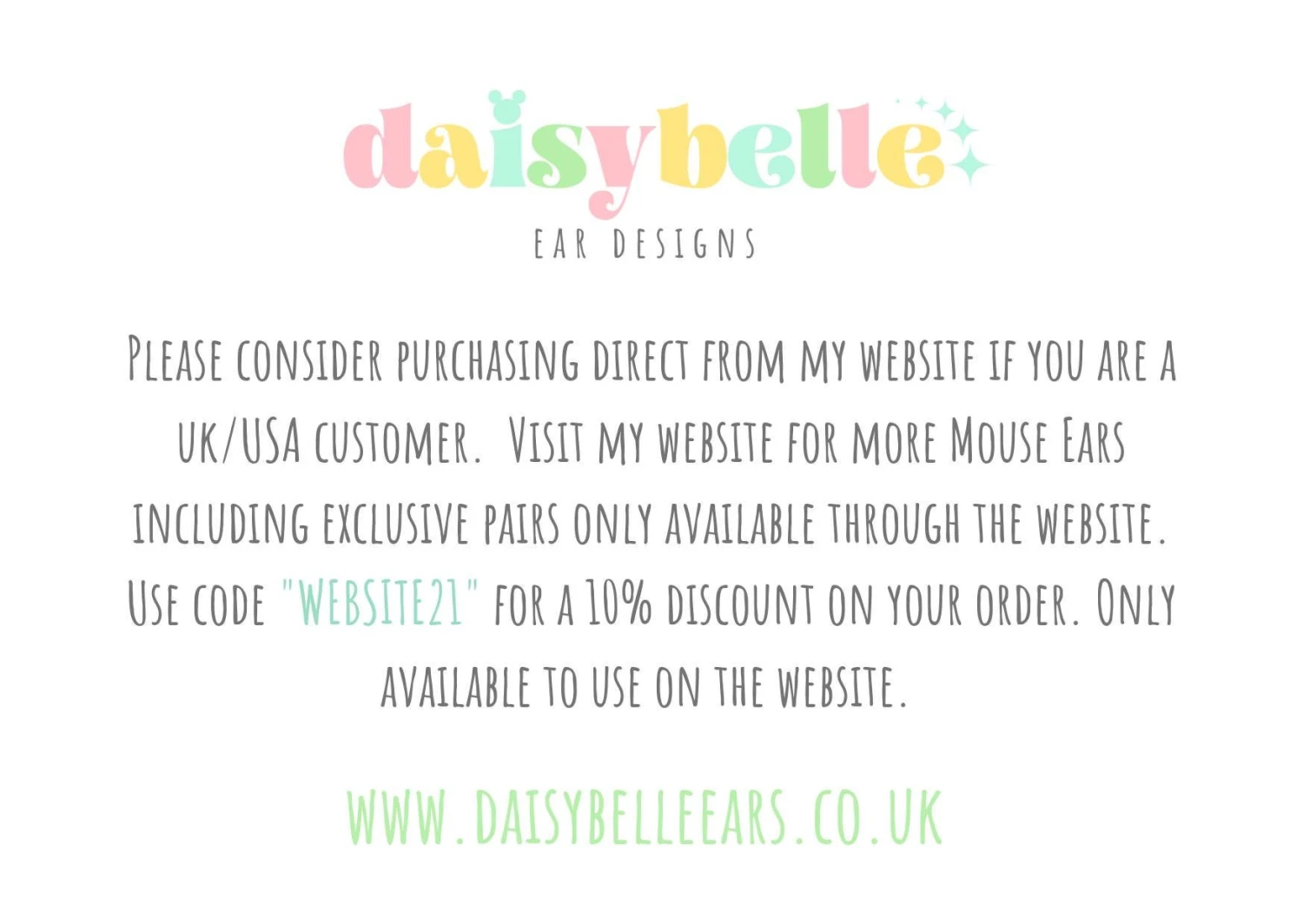Sign up to the newsletter at https://www.daisybelleears.co.uk/pages/become-a-daisybelle-ear-designs-vip to receive a 15% discount code on your next purchase and information on new releases, upcoming sales, further discounts and deals including exclusive pairs only available on the website.