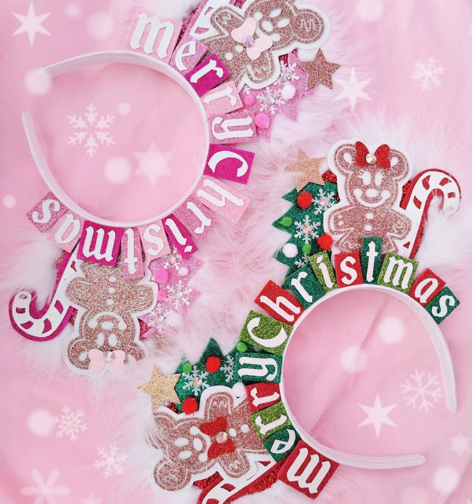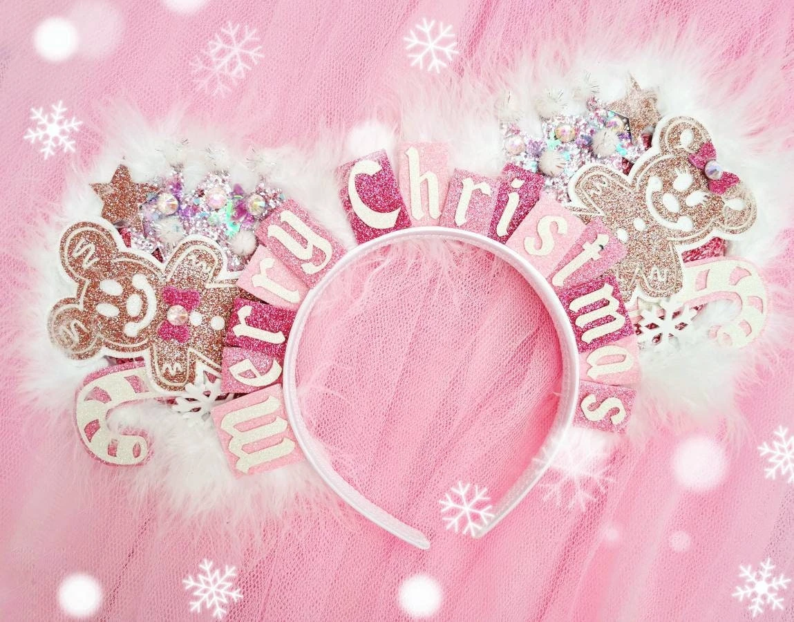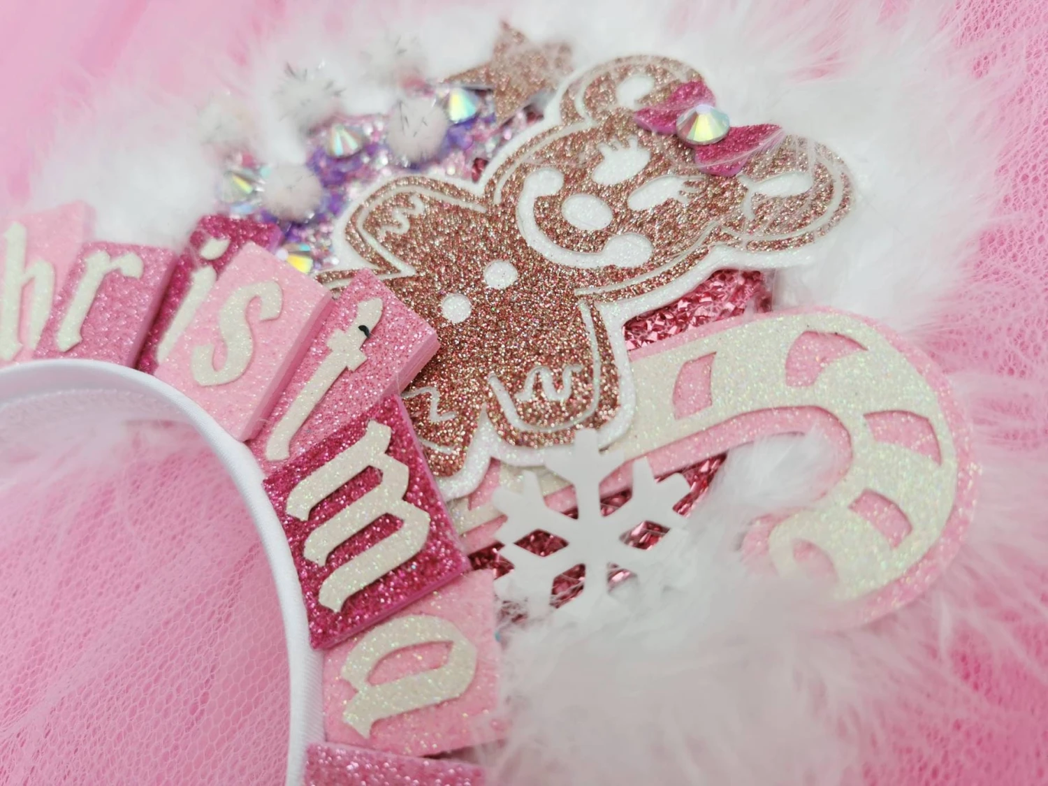 Cute glittery mouse ears with ‘Merry Christmas’. Made in your three shades of pink!