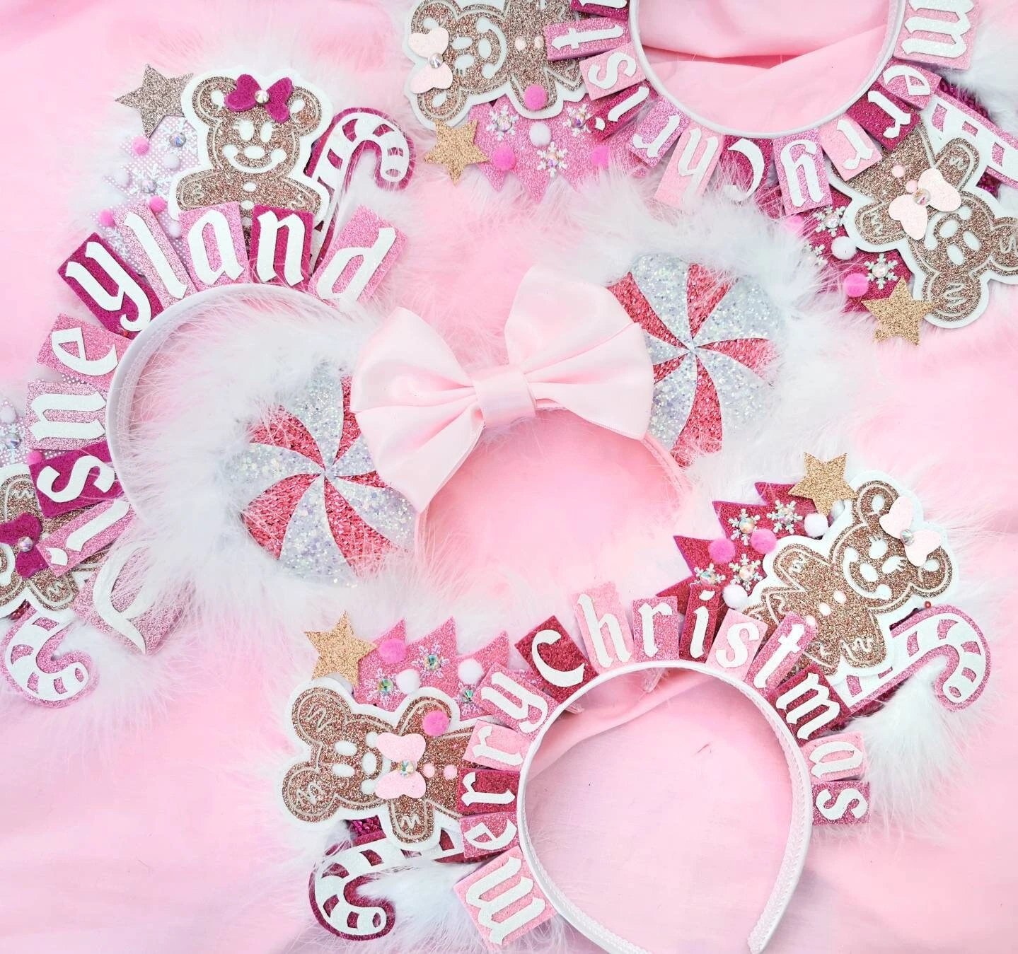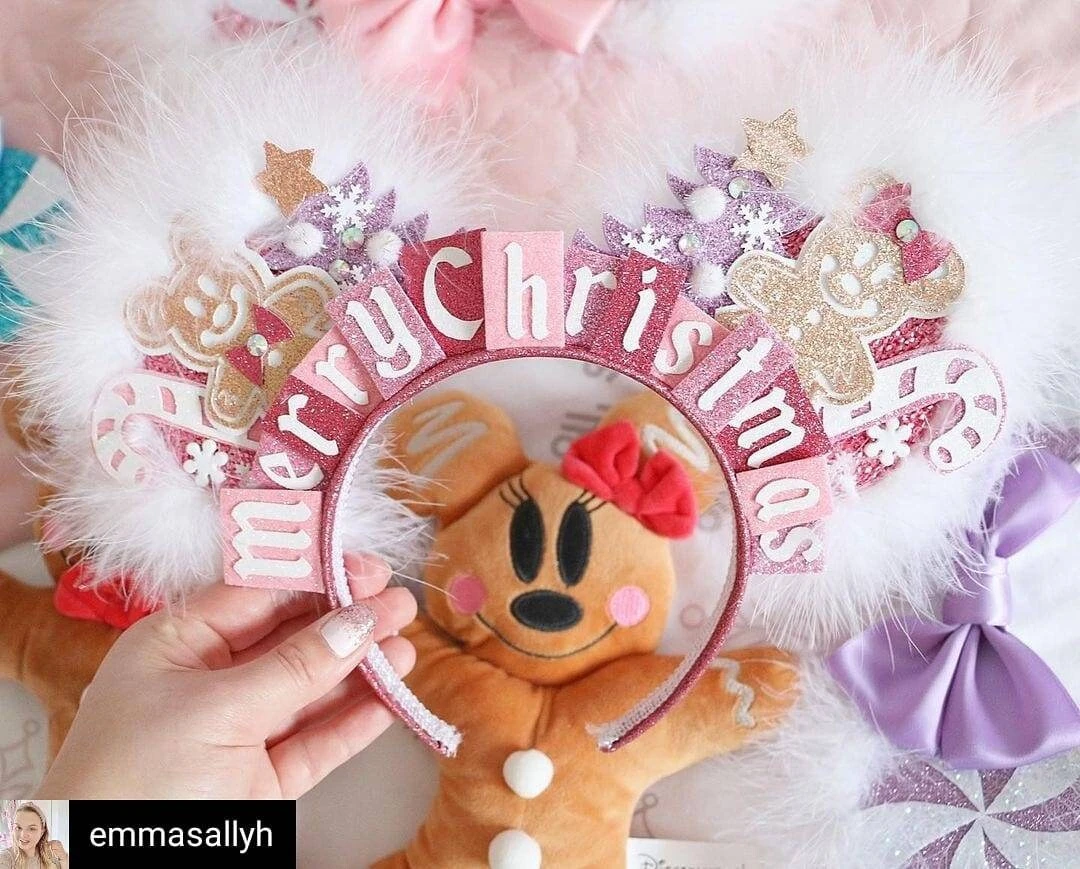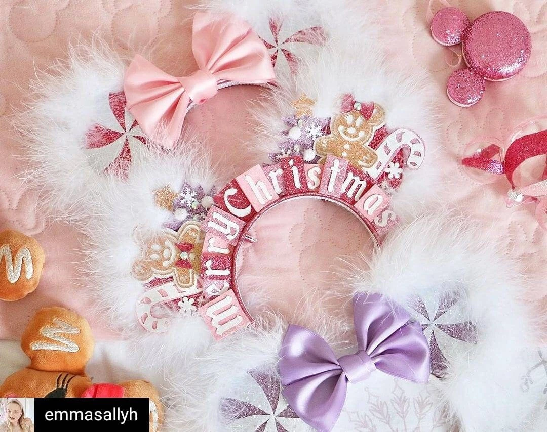 Cute glittery mouse ears with ‘Merry Christmas’. Made in your three shades of pink!