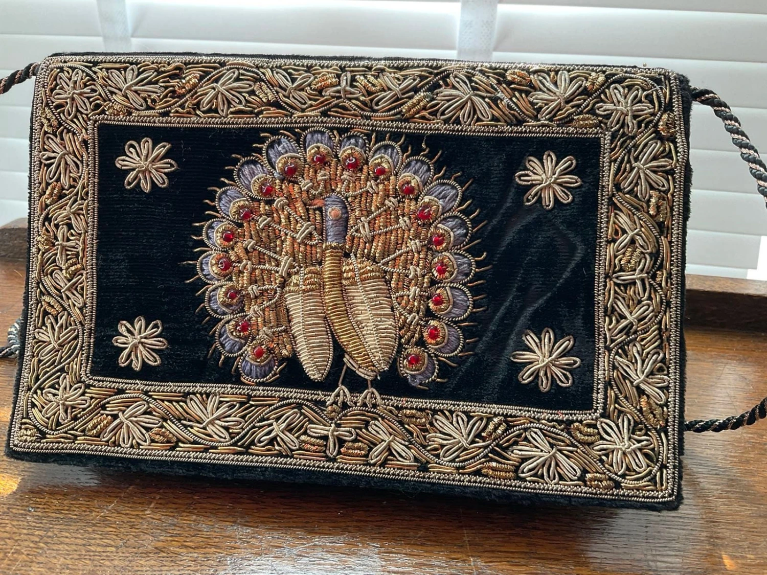PEACOCK BIRD WIREWORK ON BLACK VELVET BIDY